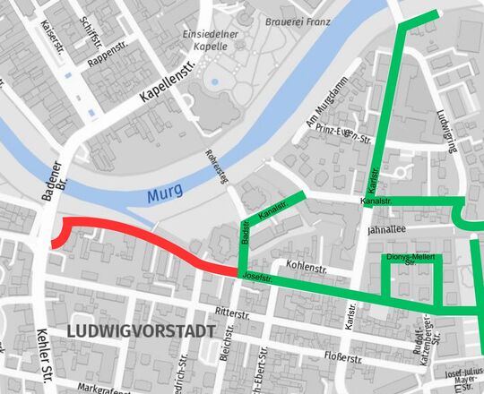 In der Josefstraße werden ab Montag, 20. Oktober 2025, zwischen der Kreuzung Bleichstraße und Kehler Straße neue Wärmeleitungen verlegt. Die Verlegung der Wärmeleitung in diesem Bereich erfolgt in mehreren Teilbauabschnitten. Während der Bauarbeiten werden die betroffenen Teilstrecken abschnittsweise voll gesperrt: Die Sperrung erfolgt abschnittsweise in mehreren Bauabschnitten beginnend von der Einmündung der Carl-Friedrich-Straße in Richtung Kehler Straße. Die Josefstraße wird dadurch zwischen der Bleichstraße und der Kehler Straße jeweils zur Sackgasse, die Zufahrt bis zur Baustelle ist frei.